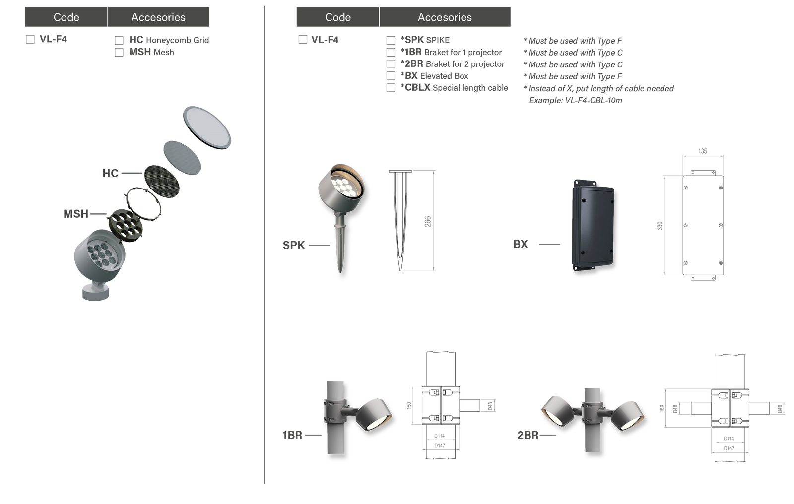 FOX 4 Downloads DataSheet .PDF Full Family .PDF Drawing .DWG Photometric .ZIP 3D Model .3DS References Reference example: VL-F4-A-WH-W24-10W-1,5º-UNIV-STD Accesories
