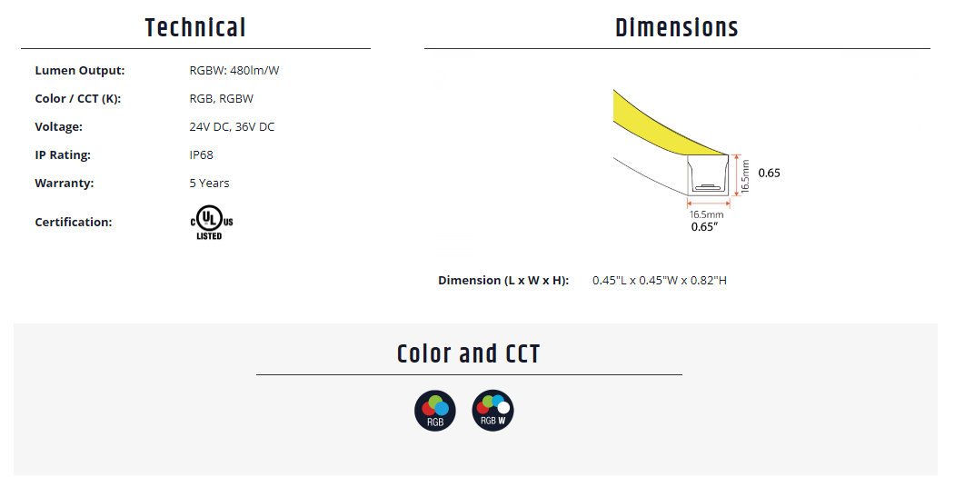 - Options of Single Color, White Tuning and Dim to Warm