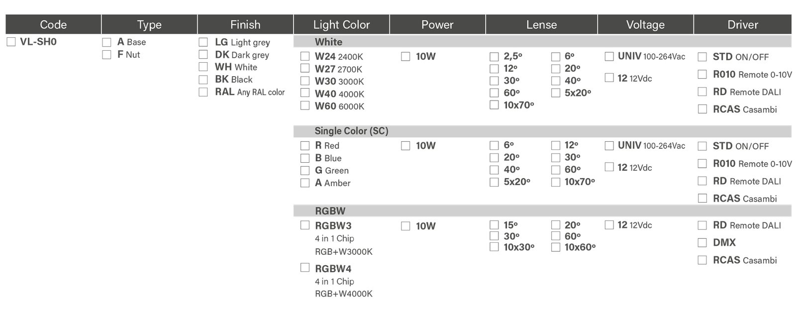 SHELL 0 Downloads DataSheet .PDF Full Family .PDF Drawing .DWG Photometric .ZIP 3D Model .3DS References Reference example: VL-SH0-A-WH-W24-10W-60º-UNIV-CAS Accesories